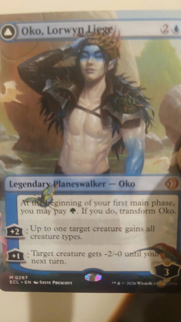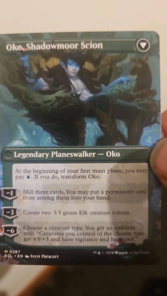 One of the biggest reveals is a double-sided Oko planeswalker card returning to the game design conversation with interesting lateral play potential, showing both midrange utility and late game options depending on how loyalty is built.